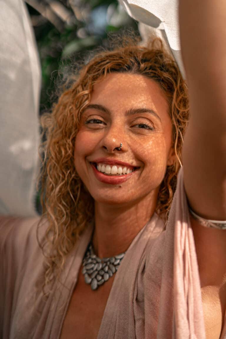Sua trajetória é atravessada por práticas que honram o corpo e os ciclos: formou-se no Yoga, vivenciou a Parteria natural e, em 2016, fundou um centro pioneiro em Curitiba-PR, onde recebeu povos indígenas para imersões e cerimônias.